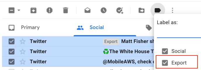 I started by assigning all of the emails in Gmail that I wanted to export a Label. For the purpose of this tutorial, I created the label “Export”
