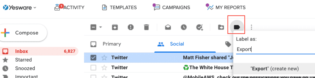 After I created the label “Export”, I next associated the label with the emails that I wanted to save as PDF.